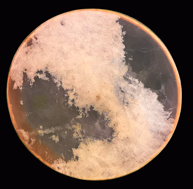 Sa peau de vachette d’épaisseur moyenne et son diamètre de 45 cm lui permettent de délivrer un son profond dont les vibrations résonnent profondément dans le corps de la personne qui le joue et éventuellement dans celui d’un patient traité avec le Tambour.